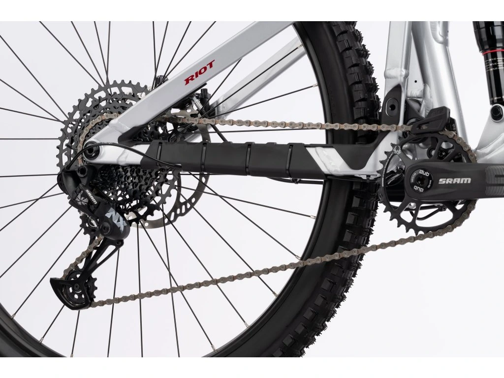 Moderní rám RIOT AL je v kolekci 2025 ve dvou kategoriích: ALL MOUNTAIN a TRAIL. Přepákování tlumiče zadní stavby s názvem Traction Link® přináší tuny zábavy, kontroly a potřebné tuhosti ve sjezdových pasážích a neomezuje jezdce ani při cestách nahoru.