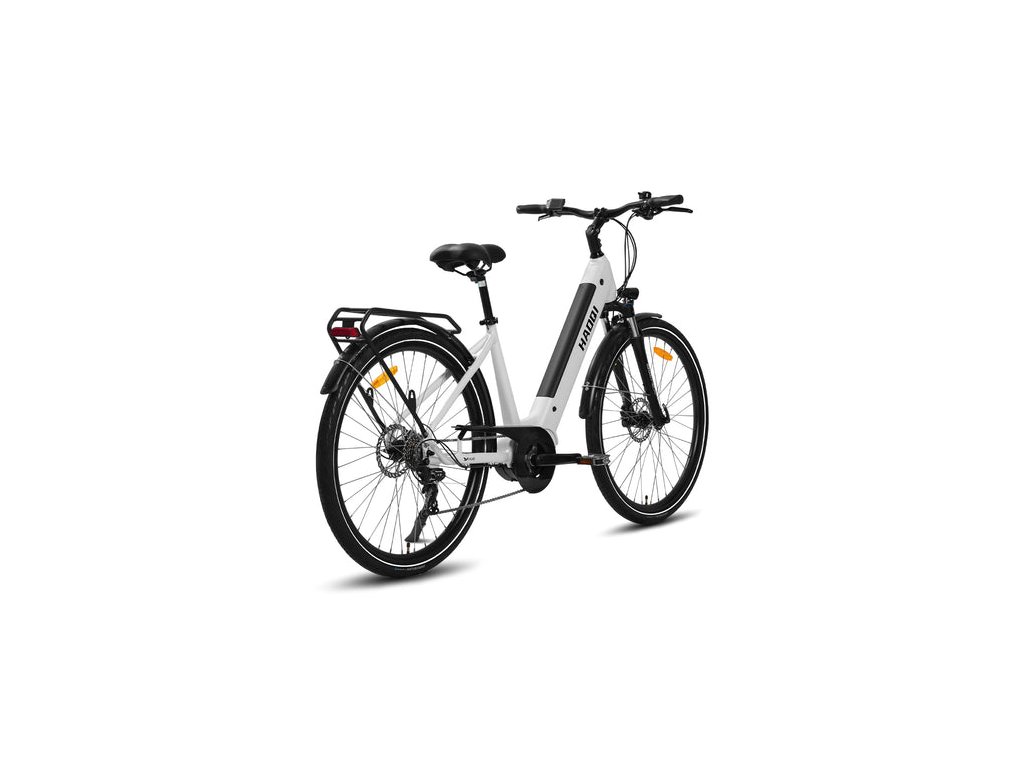 Príjemný elektrobicykel s nízkym nástupom, motorom Bafang M400 a plnou výbavou. Odporúčaná akčná cena: 1269 Tabuľka technických parametrov elektrobicykla: Motor Bafang M400 Batéria 672 Wh / 48 V Ovládanie Bafang LCD Ráfiky 28” Plášte 50-622 Rám 18” Alu Vidlica SR Suntour NEX Prehadzovačka Shimano Tourney – 7 rýchlostí Brzdy Hydraulické ZIDO (kotúče 160 mm) Ďalšia výbava Svetlá, blatníky, nosič, stojan